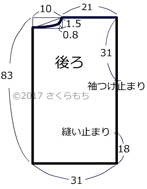 例)後ろ身頃の後ろ中心線寸法+衿あき分寸法=縦線の長さ
