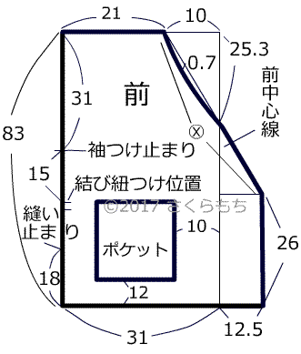 +おくみ(前中心線の右側の部分)寸法