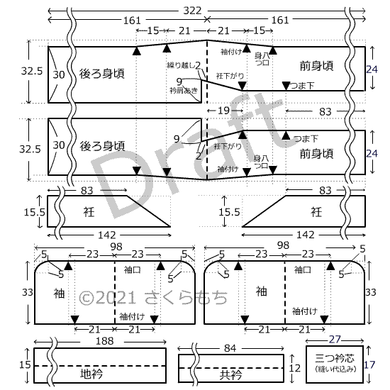 布の右端の寸法差は、4.7cmくらいあります。