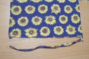 もともと、花柄の列に対して斜めに縫われていたのが、洗ったことで目立ってしまったようです。